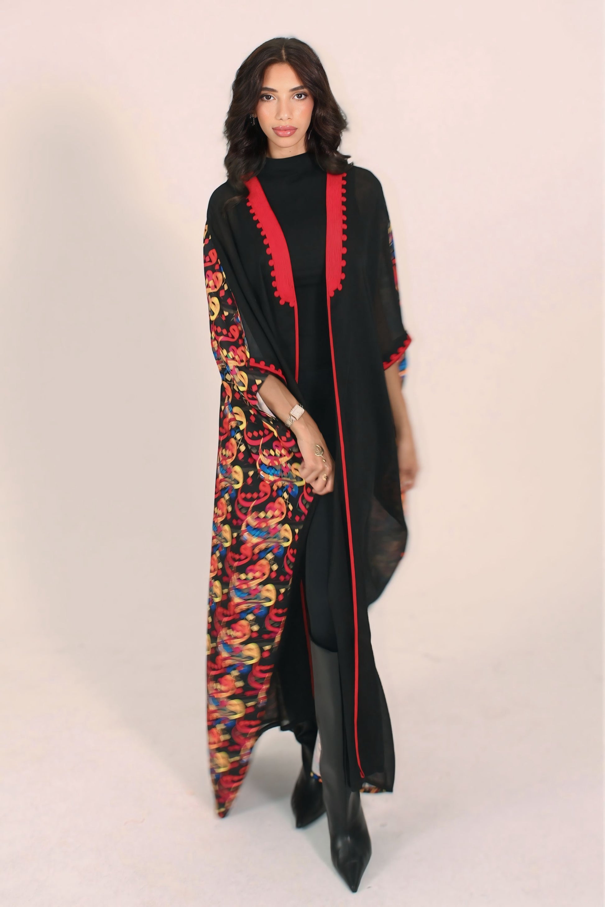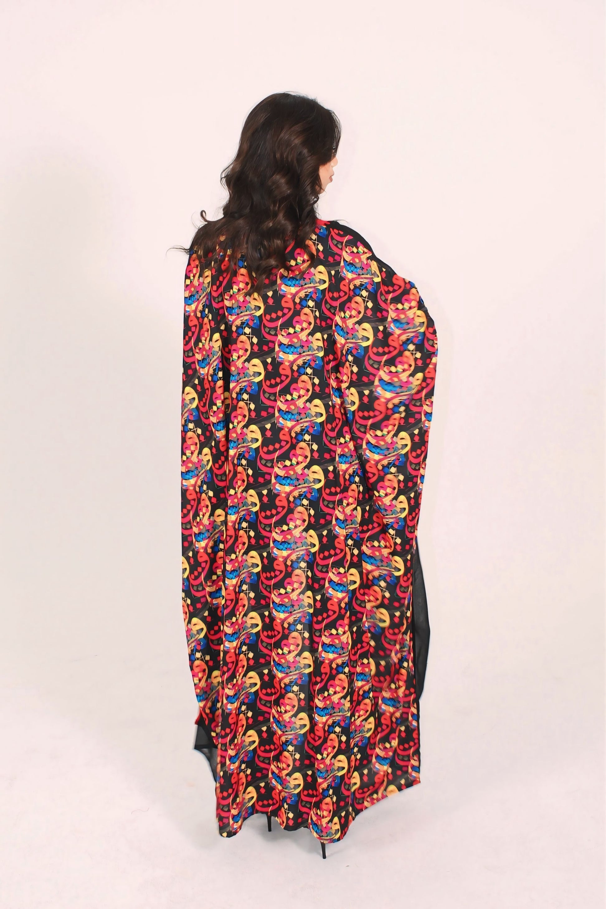 Designed for Ramadan evenings, Eid celebrations, and standout occasions, this piece blends expressive color with timeless modest sophistication. The dynamic print adds energy and personality while the elongated cut maintains elegance and grace.